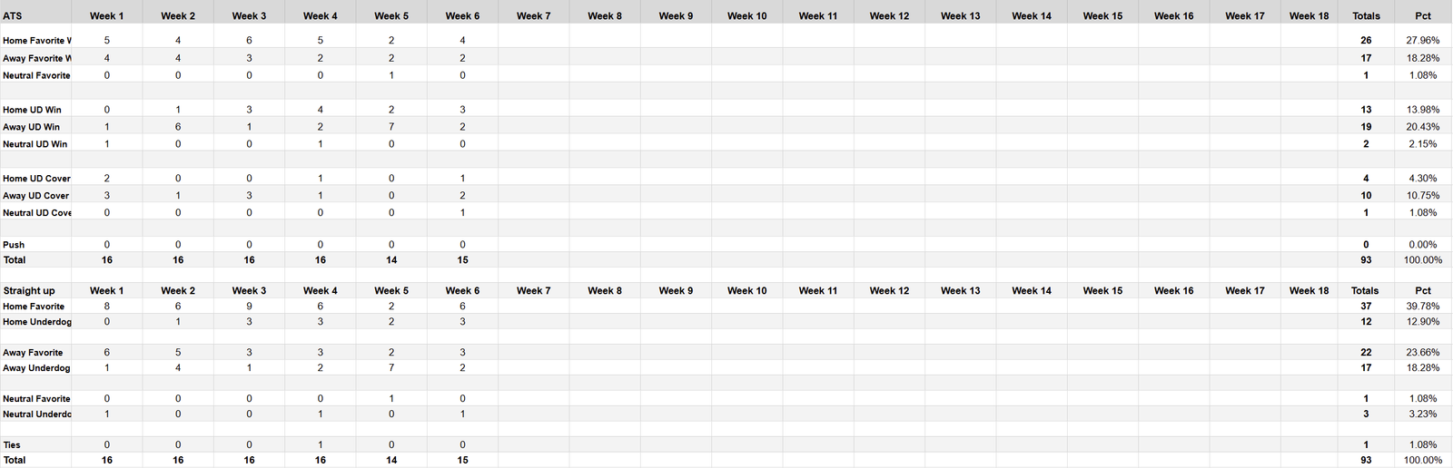 So far in 2025, underdogs have come through 52.69% of the time. That is a combination of stright up wins and covers. Underdogs are winning outright 36.56% and covering 16.13% of the time.